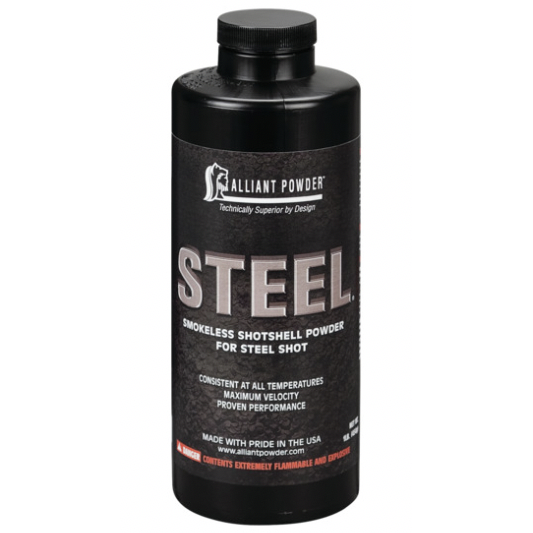 Alliant Steel smokeless shotshell powder is designed for waterfowl shotshell that brings high velocity within safe pressure limits to steel shot loads. Steel offers proven performance and maximum velocity that is consistent across temperatures. Ideal for 10 gauge and 12 gauge shotshell loads.