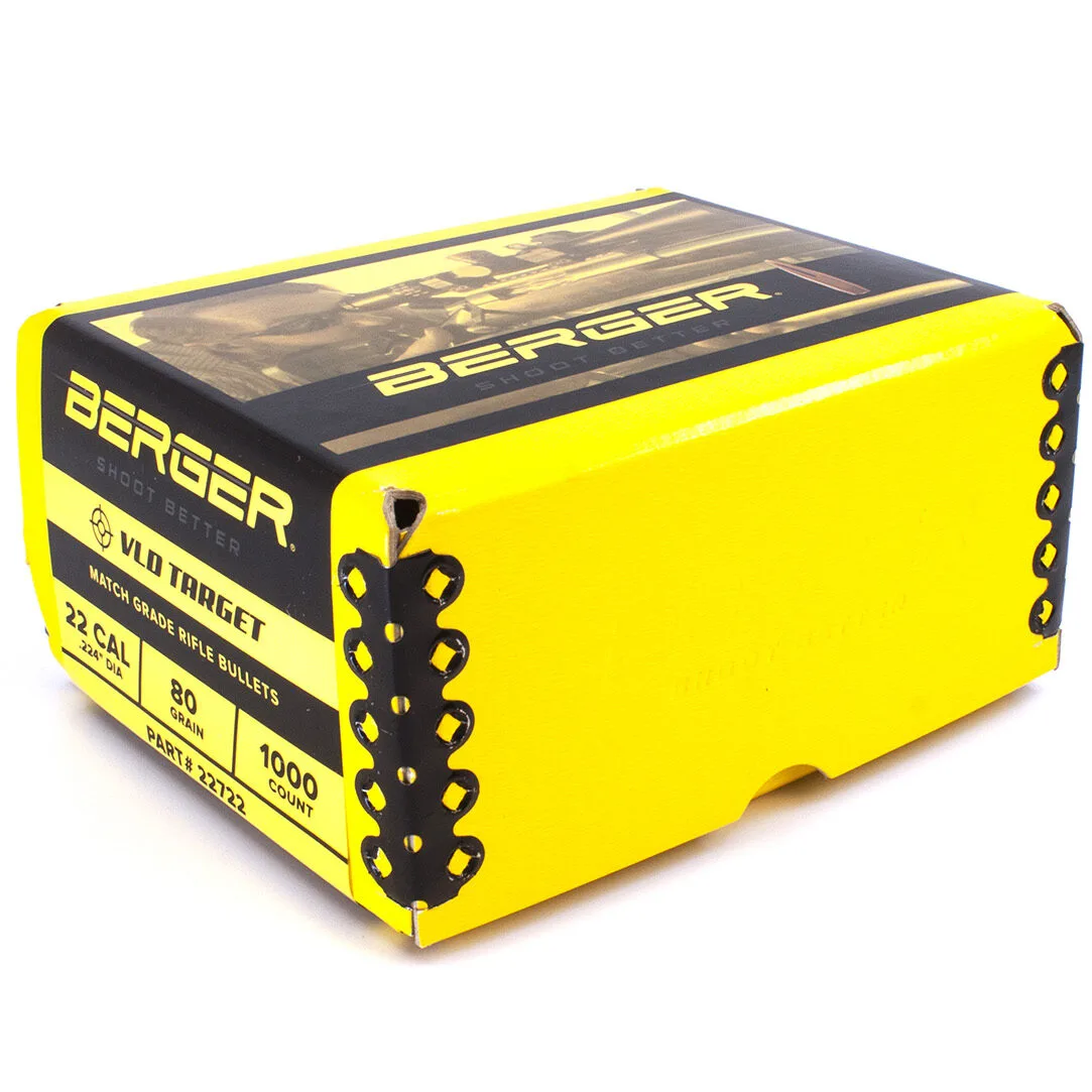 Berger .224 22 80 Grain Target Very Low Drag or VLD target rifle bullets are known for their low drag and high retained velocity. This Berger bullet is known for being one of the flattest shooting rifle bullets available on the market and other manufacturers often try to imitate but fail to duplicate its successful design.