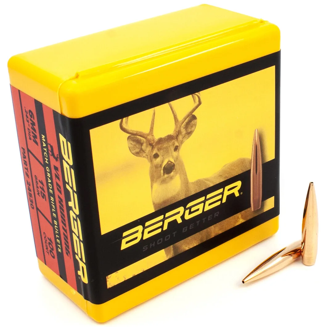 Berger .243 6mm 115 Grain Hunting Very Low Drag hunting rifle bullet is a flat shooting bullet that will improve your hunt. Designed to expand on impact and drop game fast, this bullet is sure to get you the results you want when you go out hunting. This is one of the flattest shooting bullets on the market, it’s also precise with reduced wind drift.