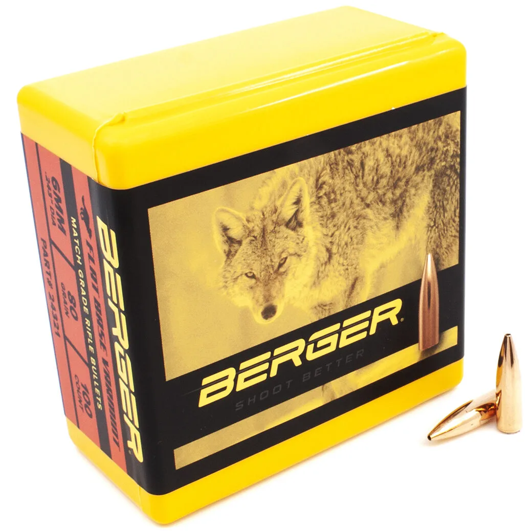 Berger Varmint Bullets feature Match Grade quality construction and have a large hollow point that produces rapid expansion when used for varmint hunting. Each bullet is made with thin nosed J4 Precision Jackets which are renowned by competitive target shooters and custom bullet makers worldwide. Berger Varmint Bullets use a tangent ogive design making these easy to load, tune, and shoot accurately. J4 Precision Jackets have a Total Indicated Runout (TIR) of +/- .0001 and extremely tight manufacturing tolerances. Berger Varmint Bullets provide match-quality construction and accuracy, increasing your hit percentage and extending your effective lethal range.