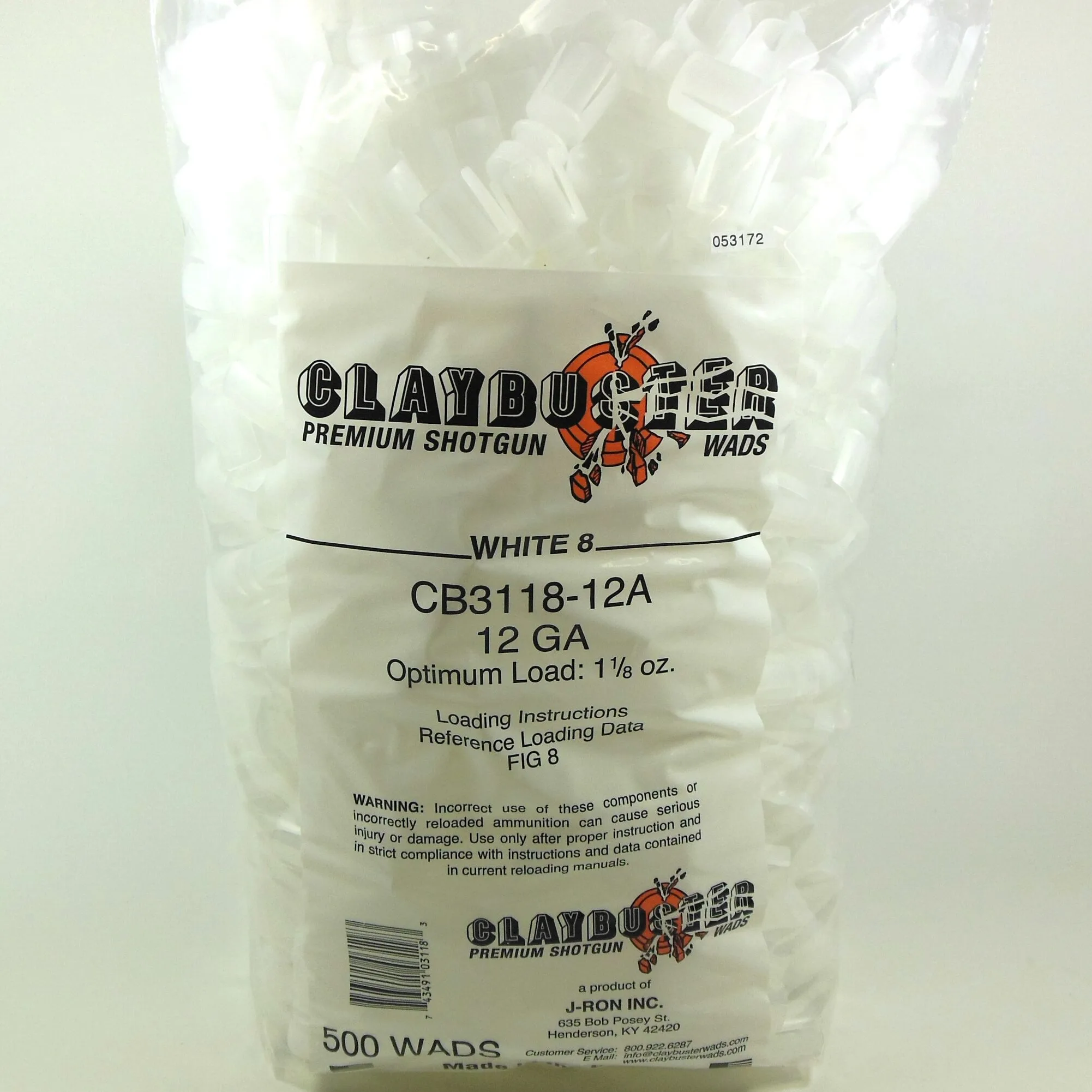 Claybuster 12 Gauge Remington White 8 Shotshell Wads (500)