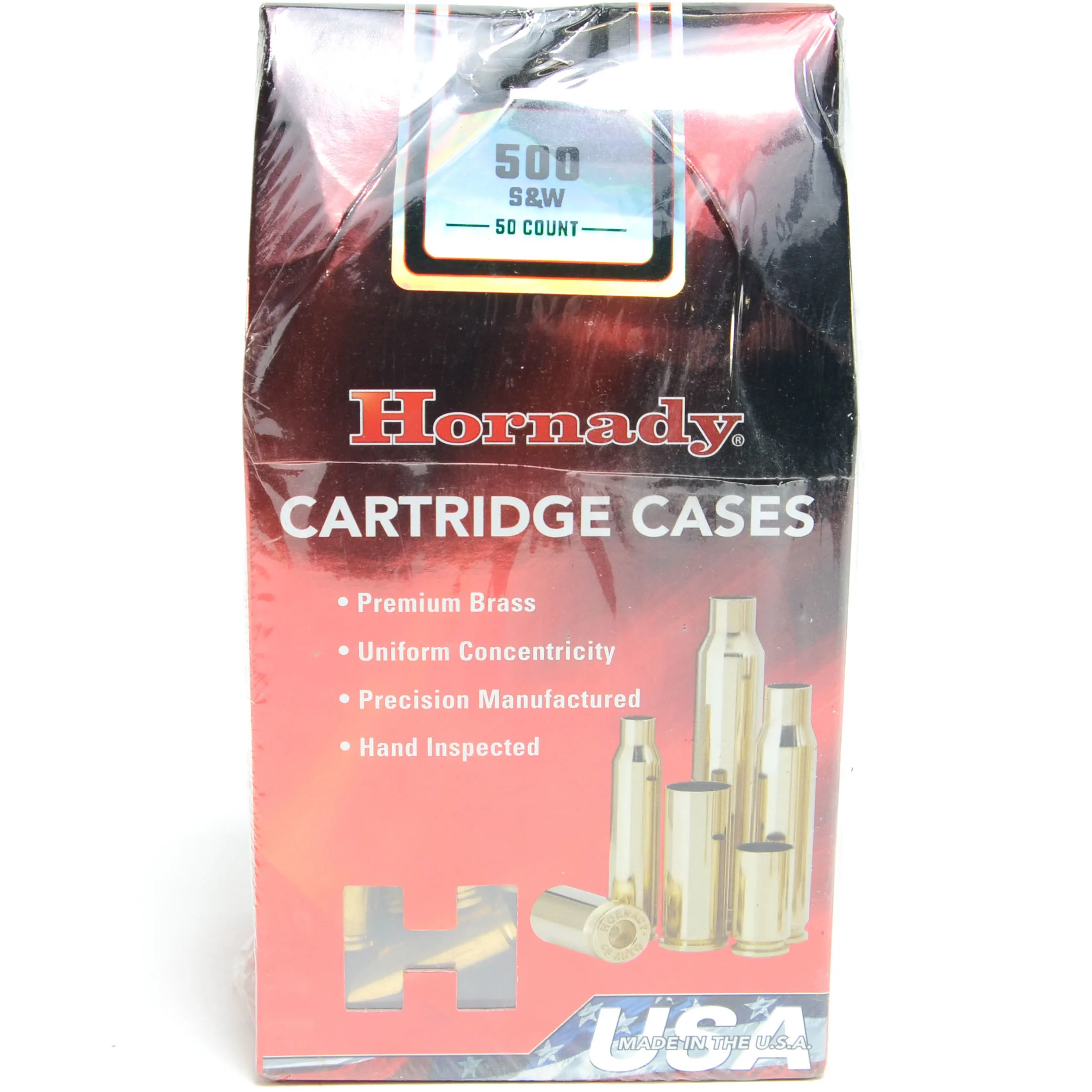 500 S&W Unprimed Brass Packed per 50 Hornady takes extra time and care in the creation of their cases, and produce them in smaller lots. This is the only way to ensure each case meets their strict quality standards. Hornady cases offer reloaders excellent uniformity in case wall thickness, case weight, internal capacity and in the primer pocket and flash hole. They measure for consistently tight wall concentricity, and even run their cases through a pressure calibration test to ensure uniform case expansion. Finally, each case is hand-inspected.