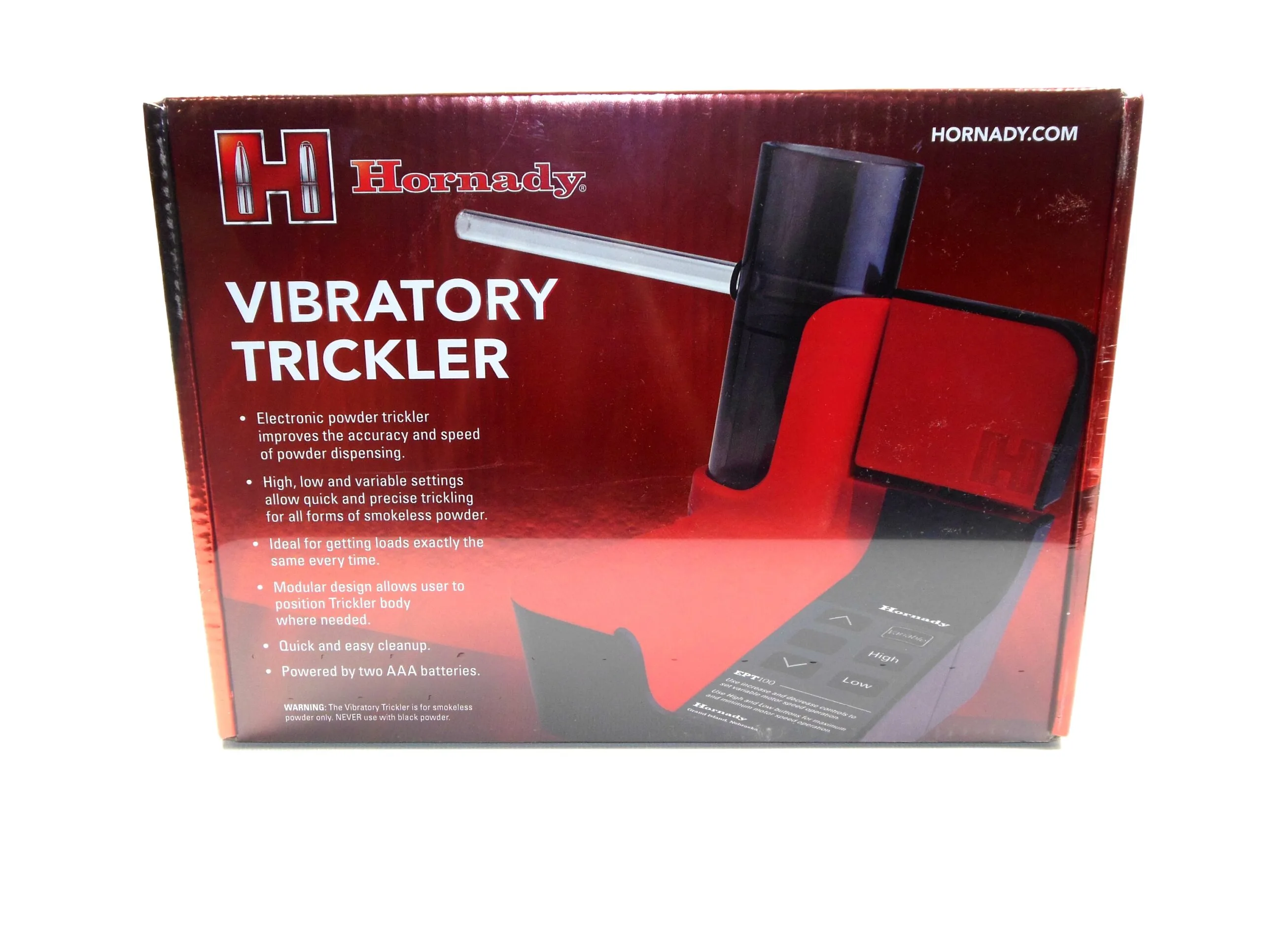 Save time and improve reloading accuracy and efficiency with the vibratory trickler. High, low and variable settings trickle all forms of powder. Modular design allows user to position trickler body where needed and makes cleanup quick and easy. Features: – save time and improve reloading accuracy and efficiency. – ideal for getting loads exactly the same every time. – high, low and variable settings trickle all forms of powder. – modular design allows user to position trickler body where needed. – backlit LED buttons. – quick and easy cleanup. – powered by two AAA batteries (not included).