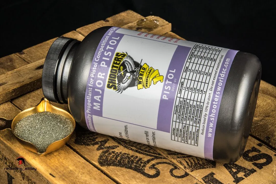 Buy all of your Shooters World Major Pistol Powder and Reloading Supplies at Powder Valley for Best Prices and Best Service Guaranteed.